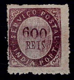 565 imageIndia 1873 Natives, types IA. Stamp Mf#19, 600 réis dark violet, fine bluish paper, issue IA. New copy, ungummed, without defects or repairs, with good color. Catalog value €300.(Image 1)