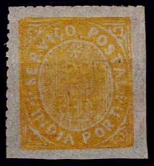 India 1877 Natives, type III B. Stamp Mf#44, 200 reis yellow, bluish and serrated paper 12.5 to 13.5