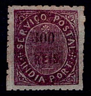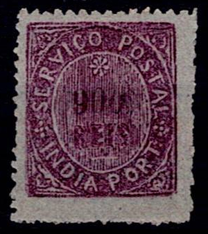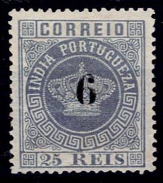 India 1881-83 Crown with surcharge. Stamp Mf#79a, 6 s/ 25 reis slate, perforation 13.5. New copy,