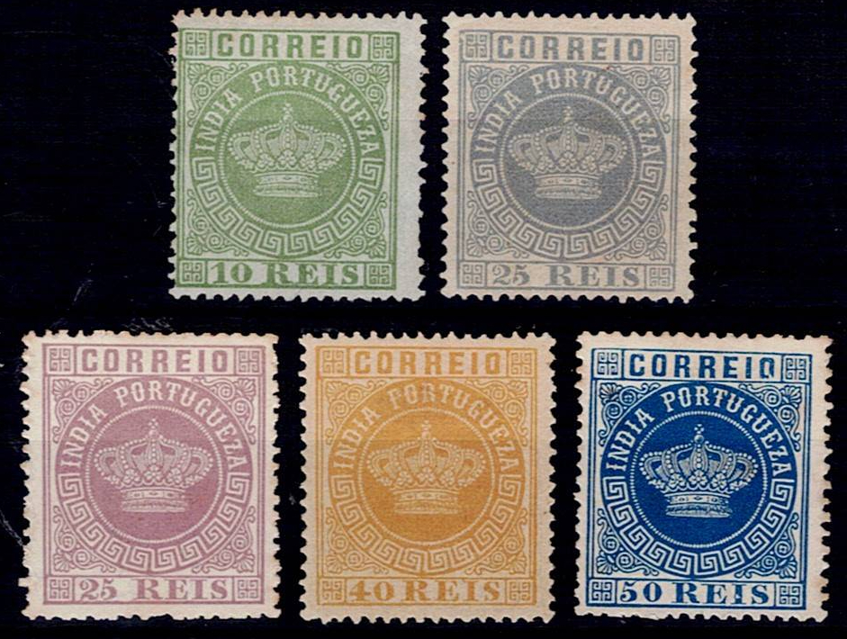 India 1880-81 Crown, new colors. Complete series of Mf#57-61 in 13.5 perforation, smooth paper. New,