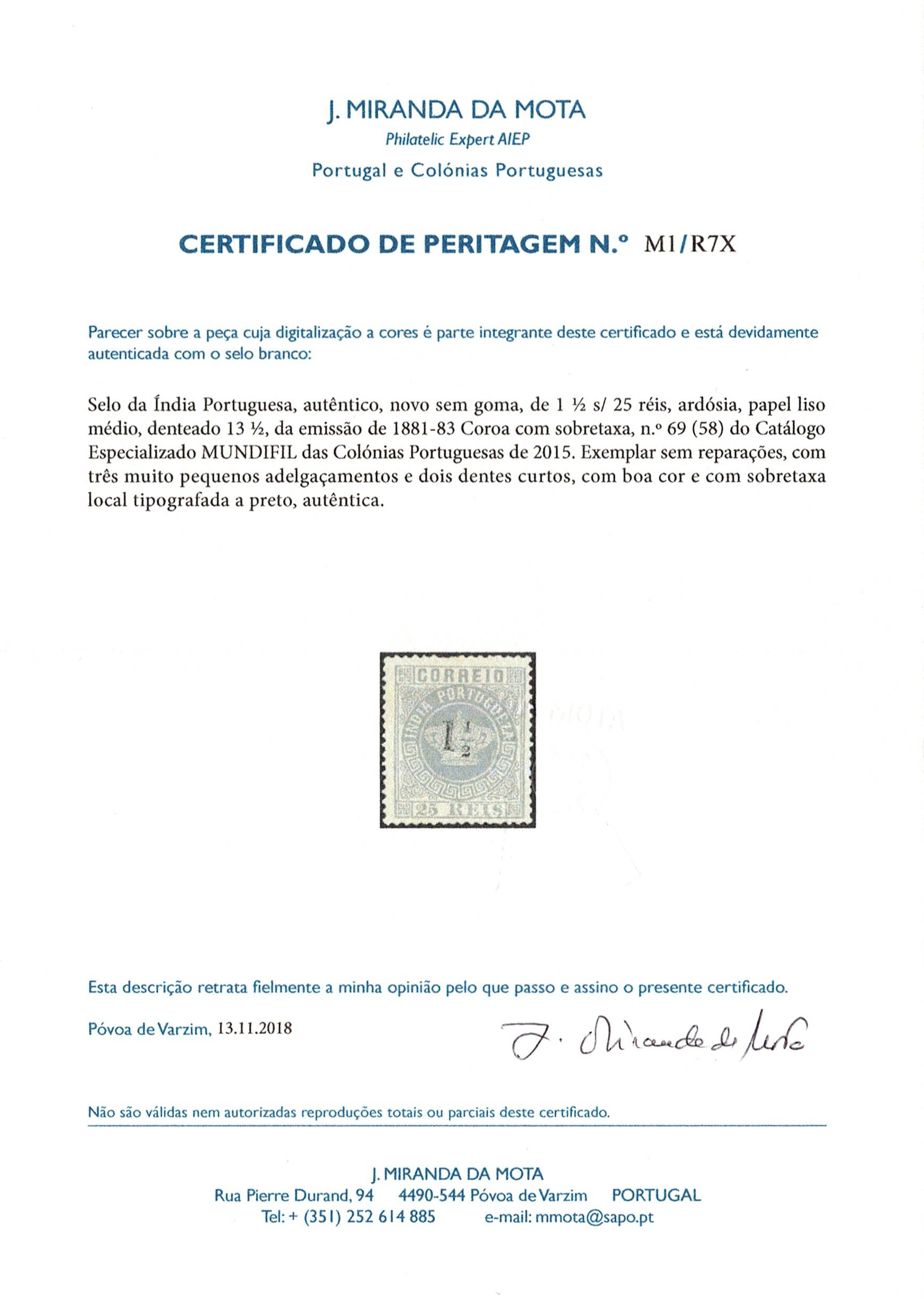 ungummed, with slight defects, without repairs and in good color. With J. Miranda da Mota certificate. Catalog value €100.(Image 1)