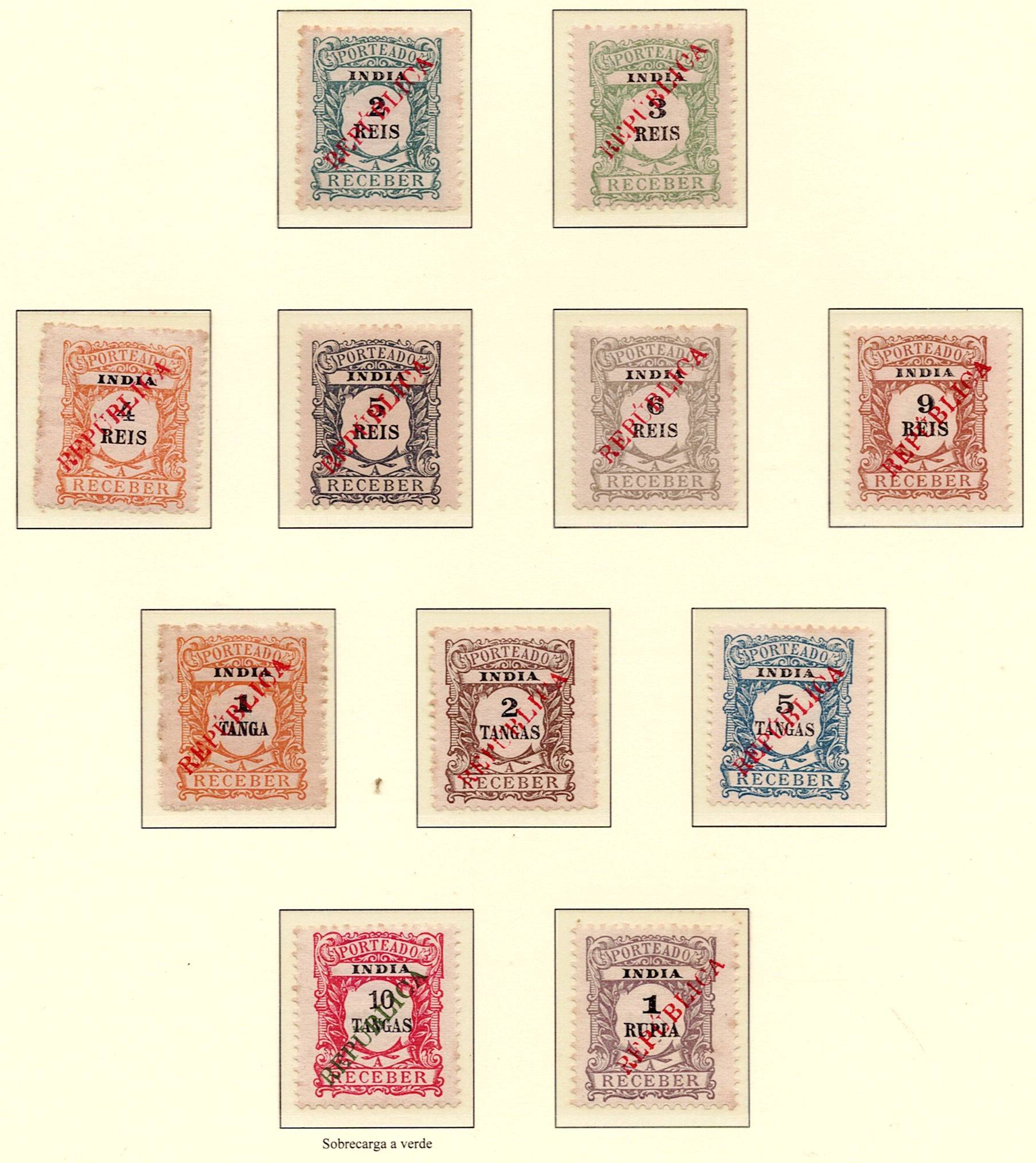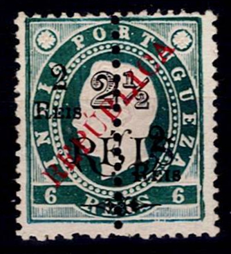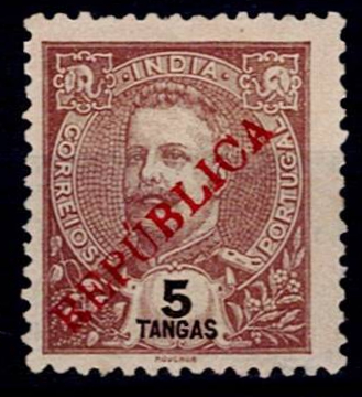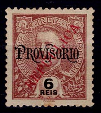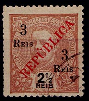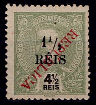 India 1914 – D. Carlos I, Provisional Mouchon type, with surcharge and overprint "REPUBLICA", typeset