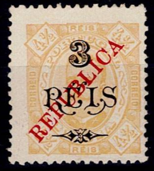 overprint "REPUBLICA", typeset locally. CLANDESTINE. MF SC 26, 27 and 29, of 1.5 reis without 4 tgs + 2 reis without 2.5 reis + 3 reis without 2.5 reis. New copies, ungummed and in good color. Catalogue value € 70.(Image 1)