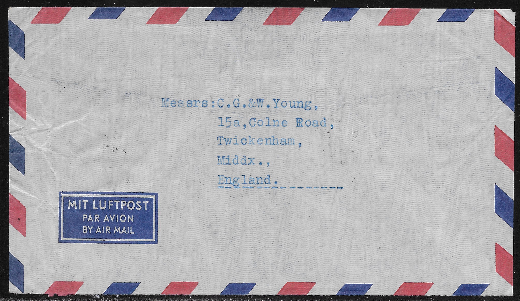 Port. India 1962 commercial airmail cover from Ponda Goa to Twickenham England, franked on the back