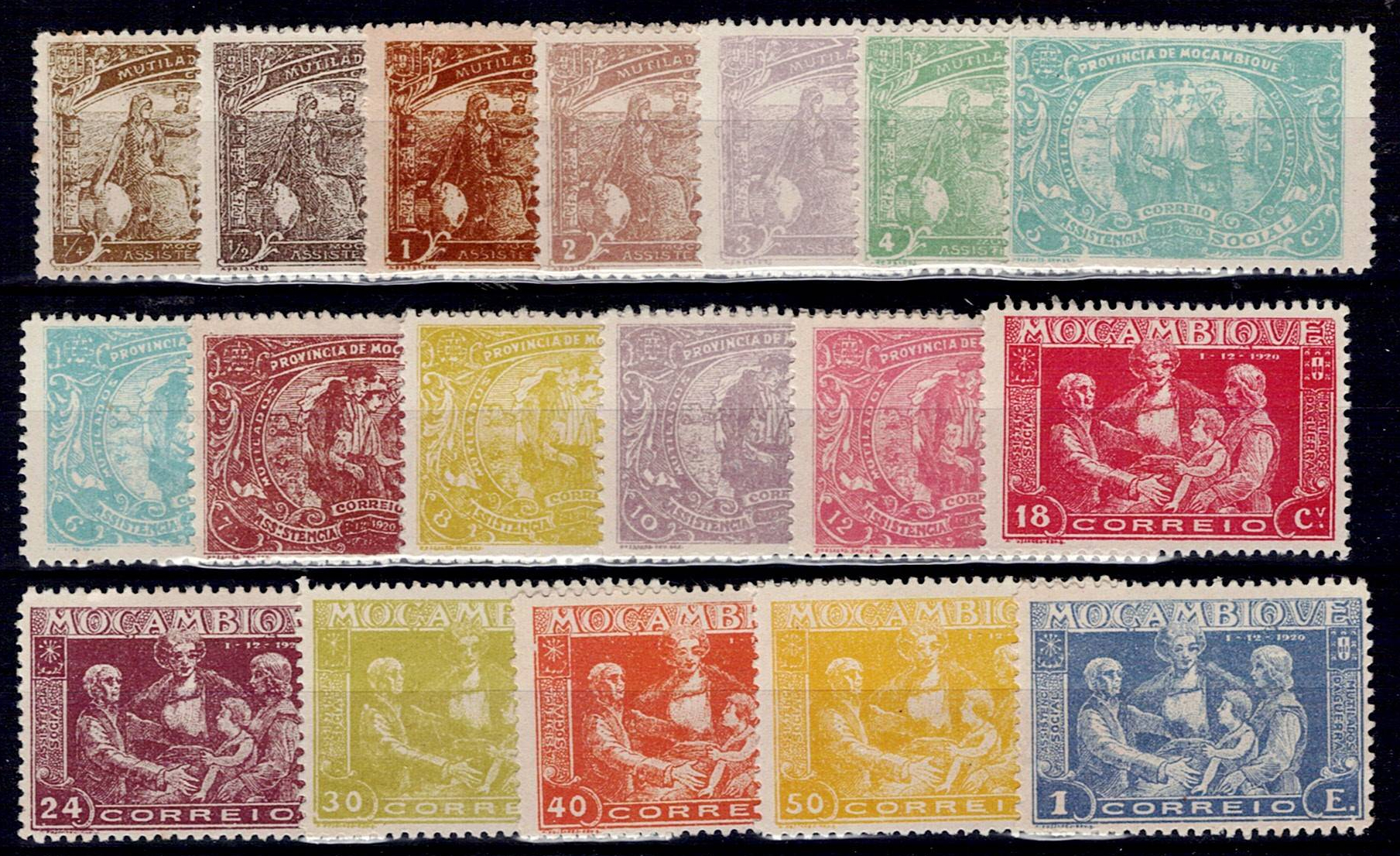 Mozambique 1938 Portuguese Colonial Empire. Complete Series of Mf#289-306, plain paper, stamps with