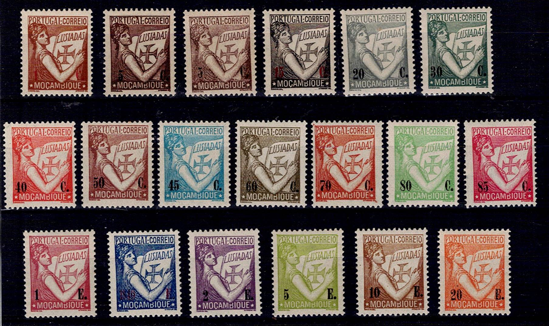 Mozambique 1933 Lusíadas. Complete Series of Mf#270-288, dotted and smooth paper, with gum and hinge.