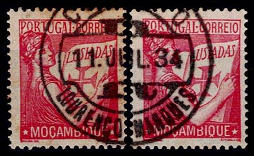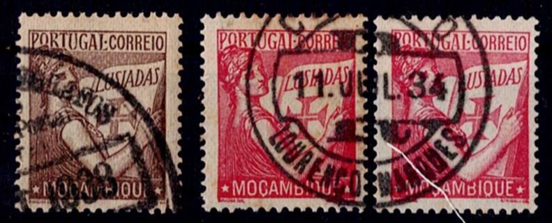 Mozambique 1933 Lusíadas. Set of 3 stamps WITH RATE OMISSION ERROR: Mf#271, 5 c. sepia and 2 stamps (it