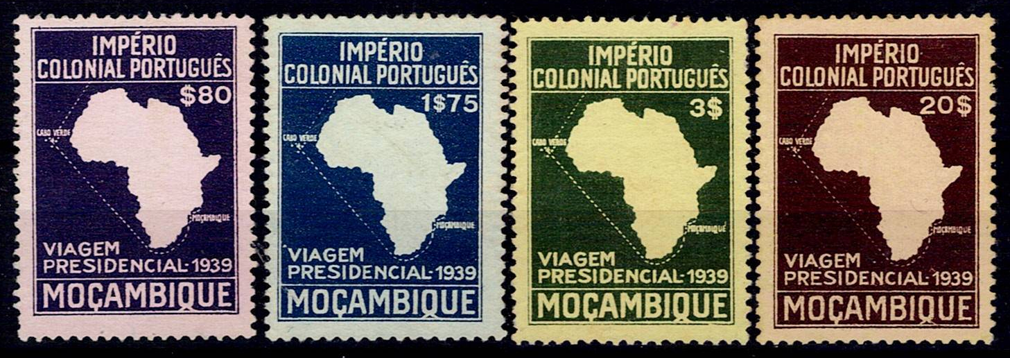 Mozambique 1939 Second Presidential Trip to the Colonies. Complete series Mf#308-311, colored porcelain