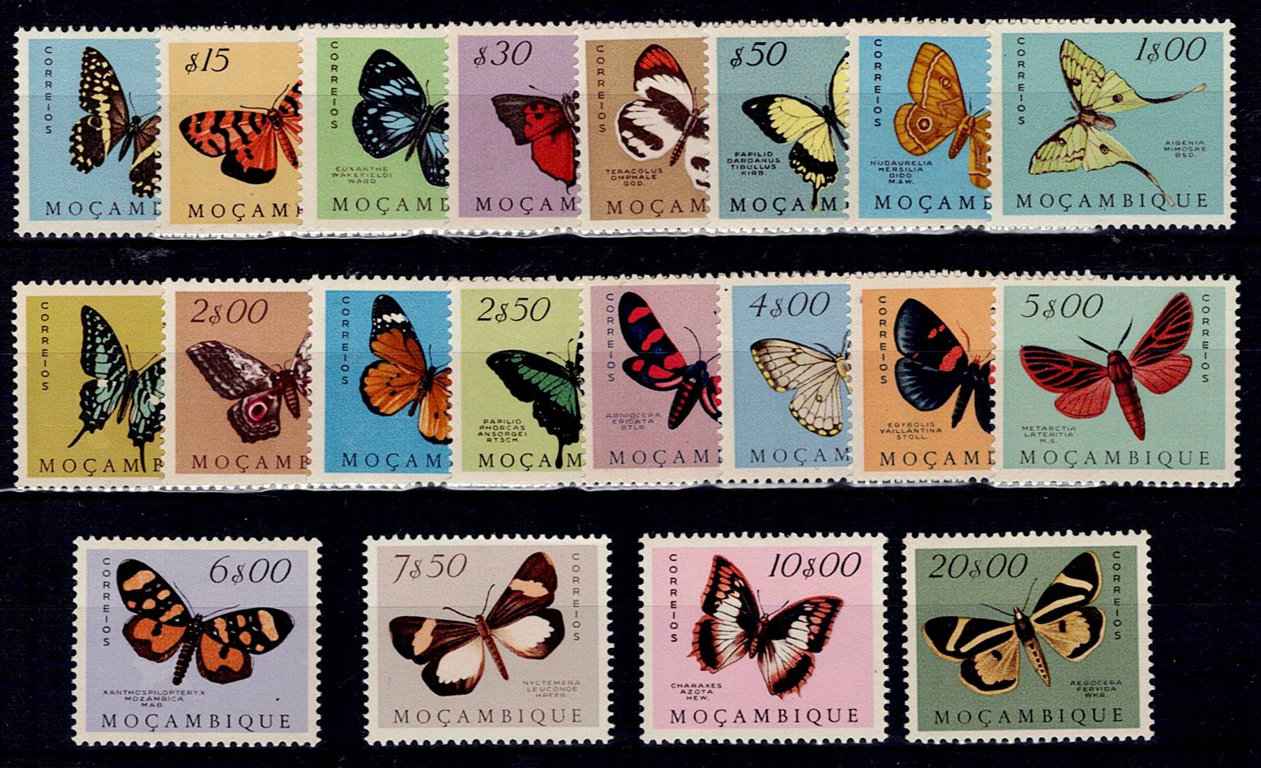 Mozambique 1952 Butterflies of Mozambique. Complete Series of Mf#388-407, smooth paper, new stamps,