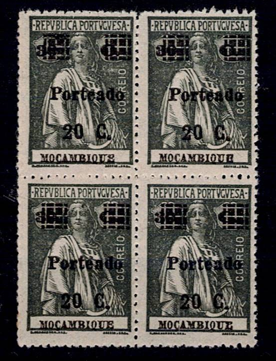 Mozambique 1924 Postage stamp, Ceres de Moçambique, with surcharge. BLOCK of Mf#P49a, 20 c. w/o 30 c,