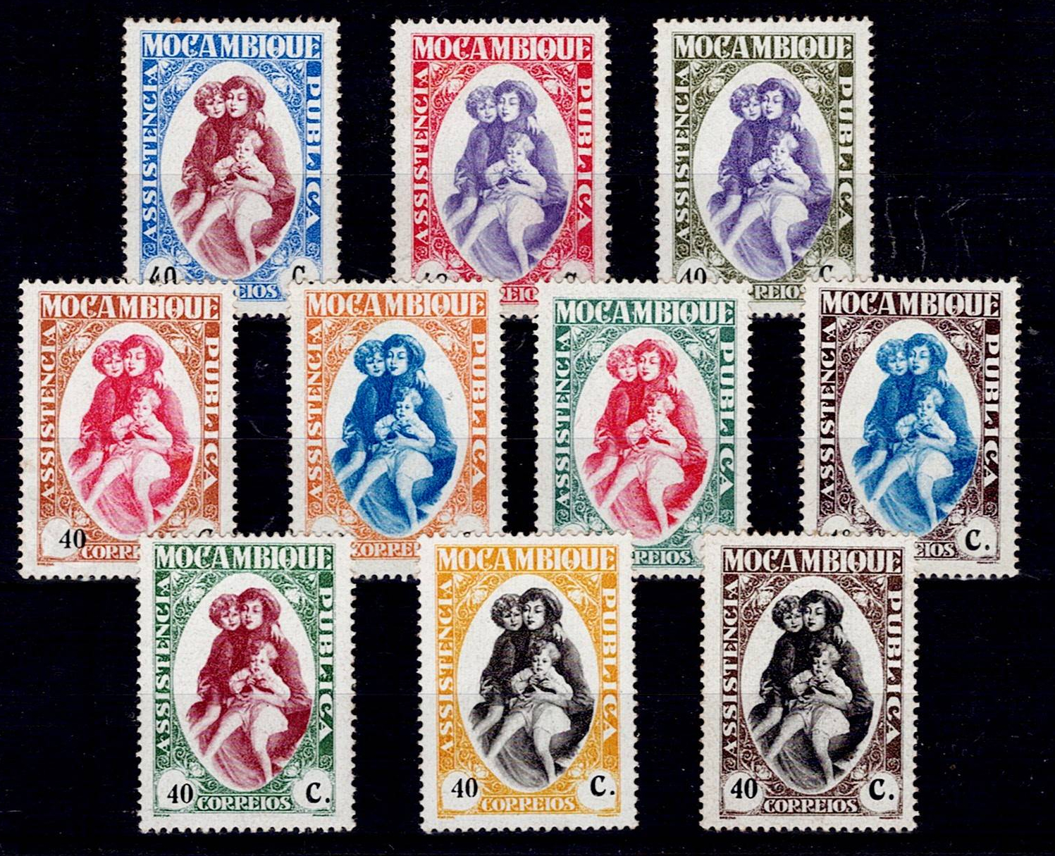 Mozambique 1929-39 Public Assistance. Complete Series of Mf#IP34-43, in new stamps, with original gum