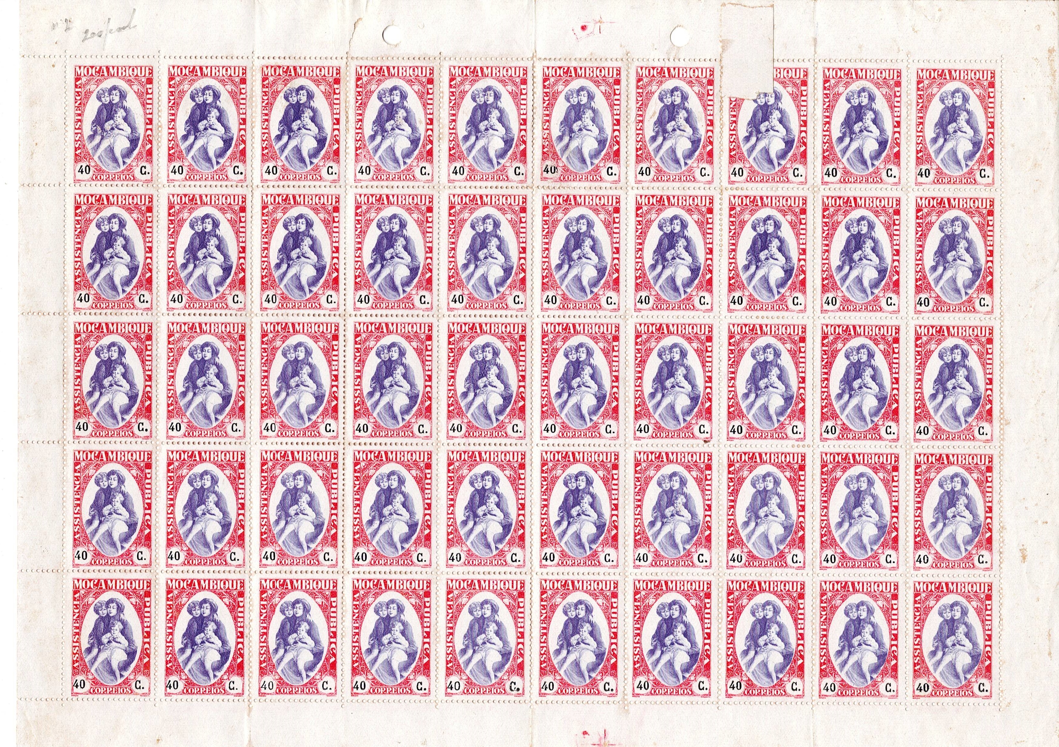 Mozambique 1929-39 Public Assistance. Complete sheet of 50 stamps, with 4 margins, of stamp Mf#IP35, 40
