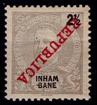 Inhambane 1911 D. Carlos I, Mouchon with Republic overprint. Stamp Mf#32, 2.5 reis gray, smooth paper /