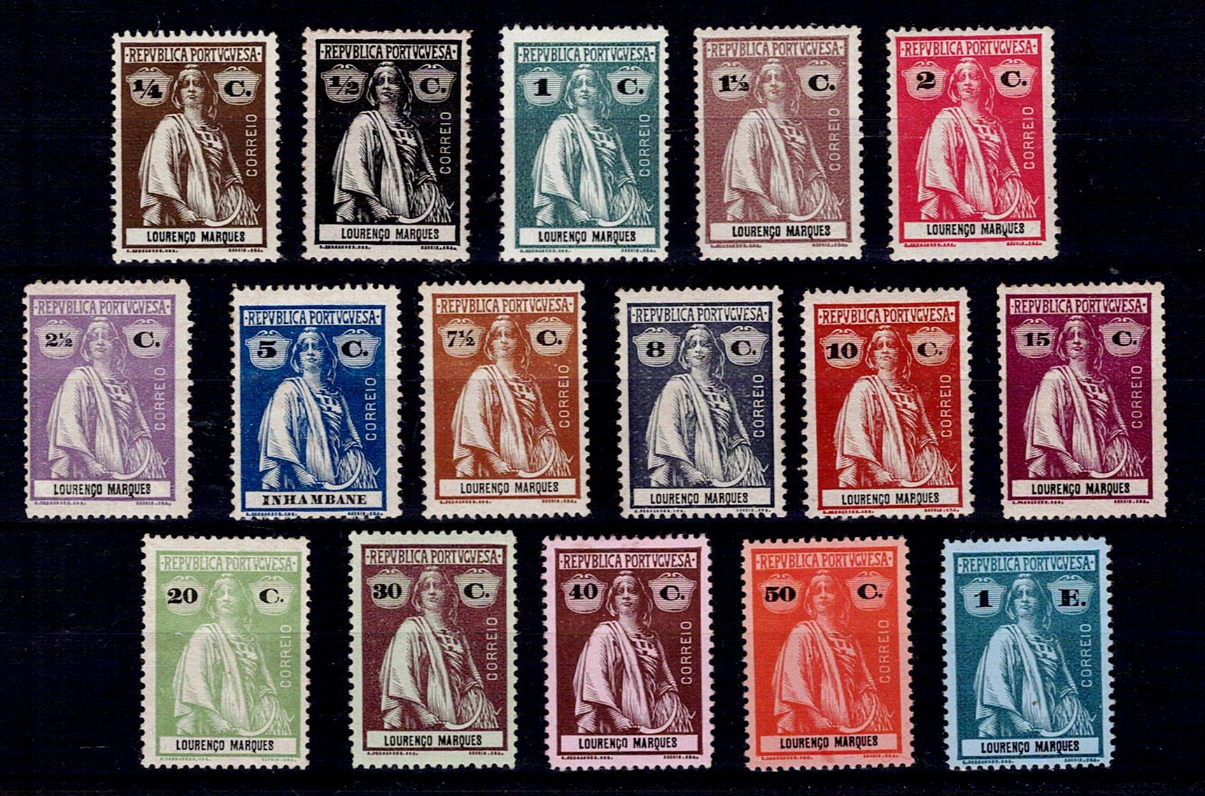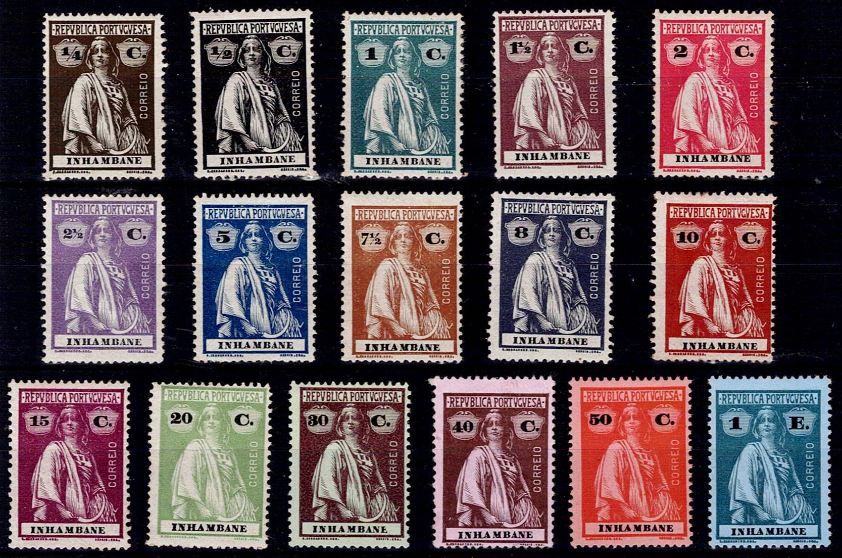 Inhambane 1914 Ceres. Complete series of Mf#71-86, medium porcelain paper, thick colored, vertically