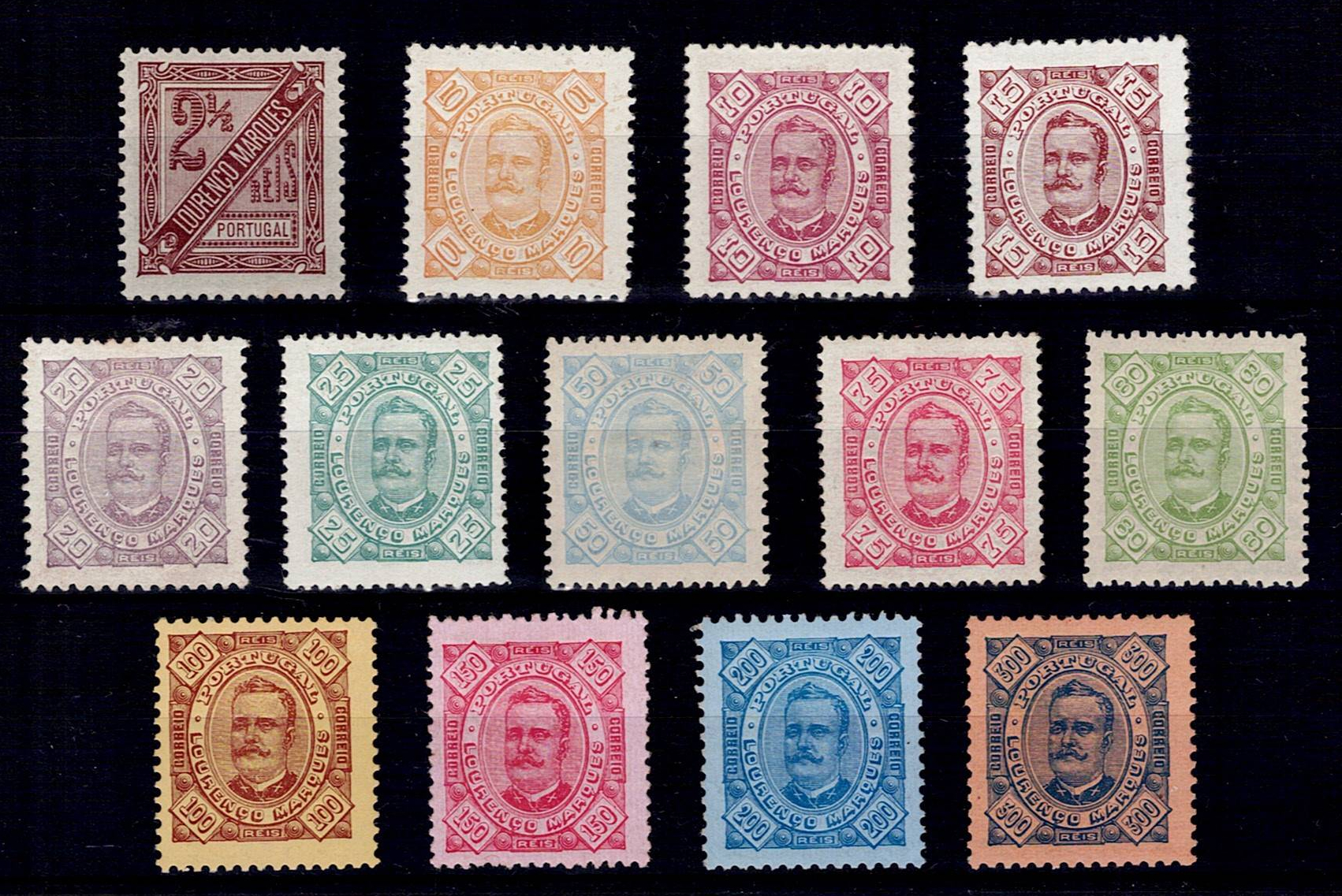 Lourenço Marques 1893-94 D. Carlos I by Diogo Neto. Complete series of Mf#1-13, on new stamps with gum