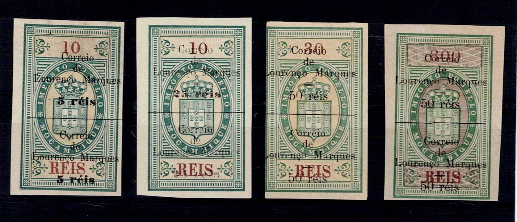 Lourenço Marques 1899 Revenue Stamps of Mozambique, with surcharge. Complete series of Mf#47-50, smooth