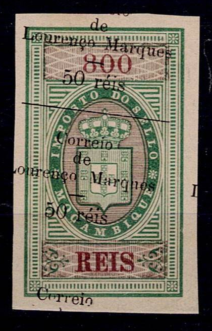 Lourenço Marques 1899 Mozambique revenue stamps, with surcharge. Stamp MF#50, 50 reis s/ 800 reis, with