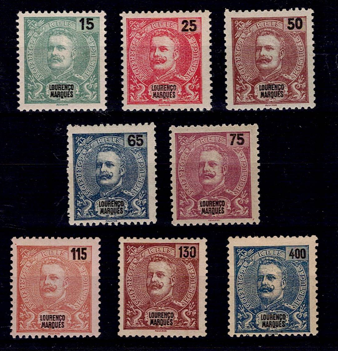 Lourenço Marques 1903 D. Carlos I new colors and values. Complete series of Mf#69-76, smooth to lightly