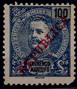 Lourenço Marques 1911 D. Carlos, Mouchon type, Republic overprint. Stamp Mf#86a, 100 reis blue on blue,