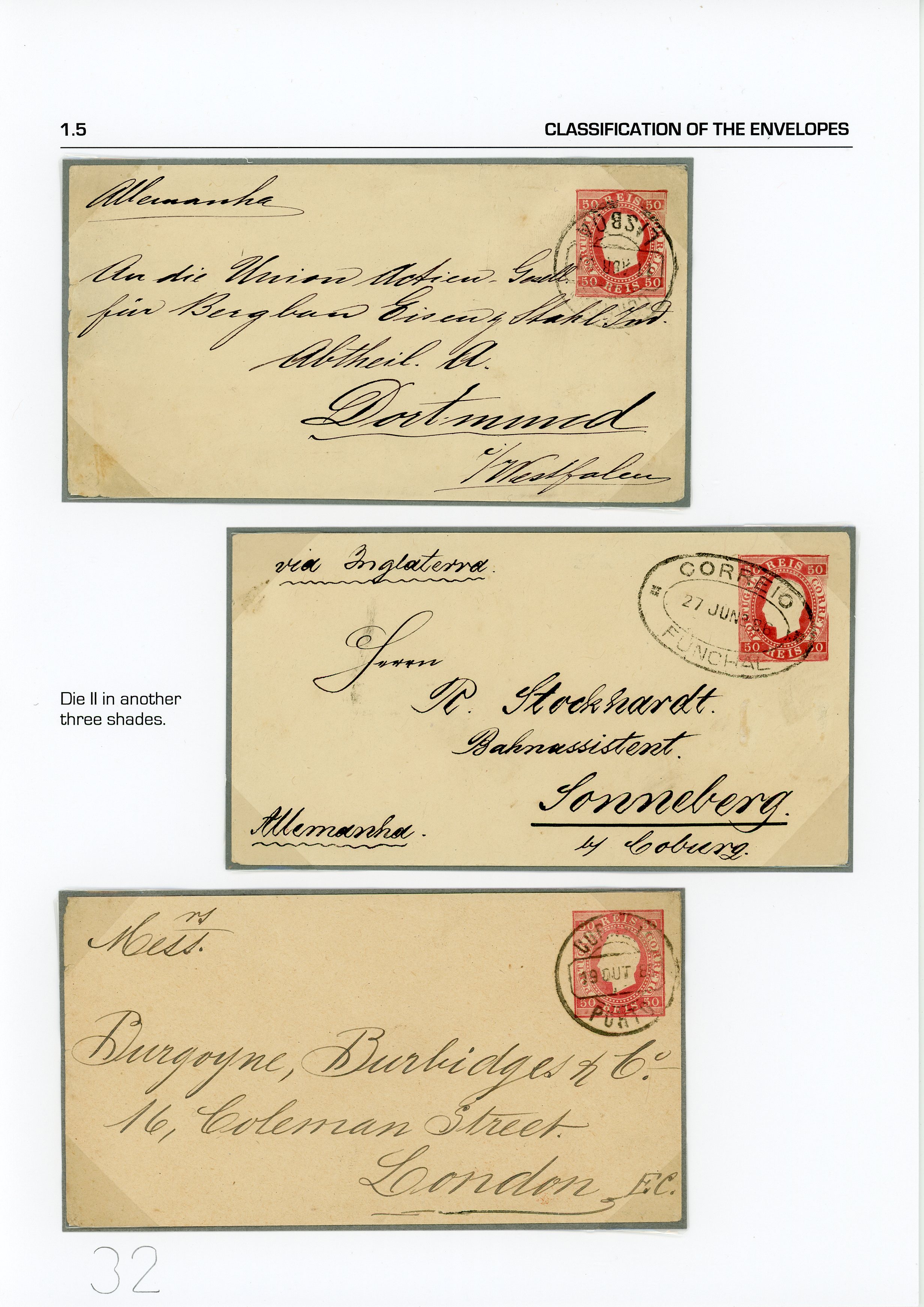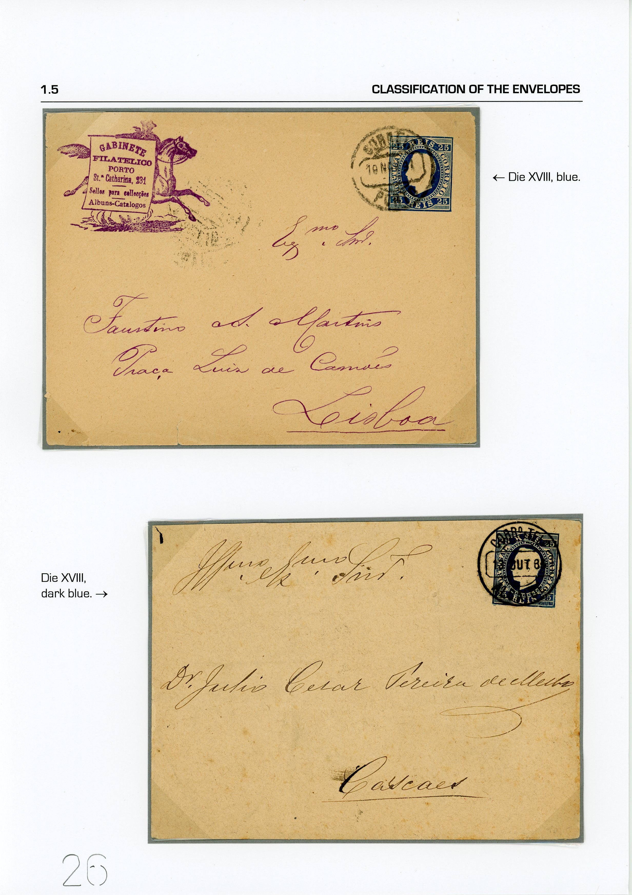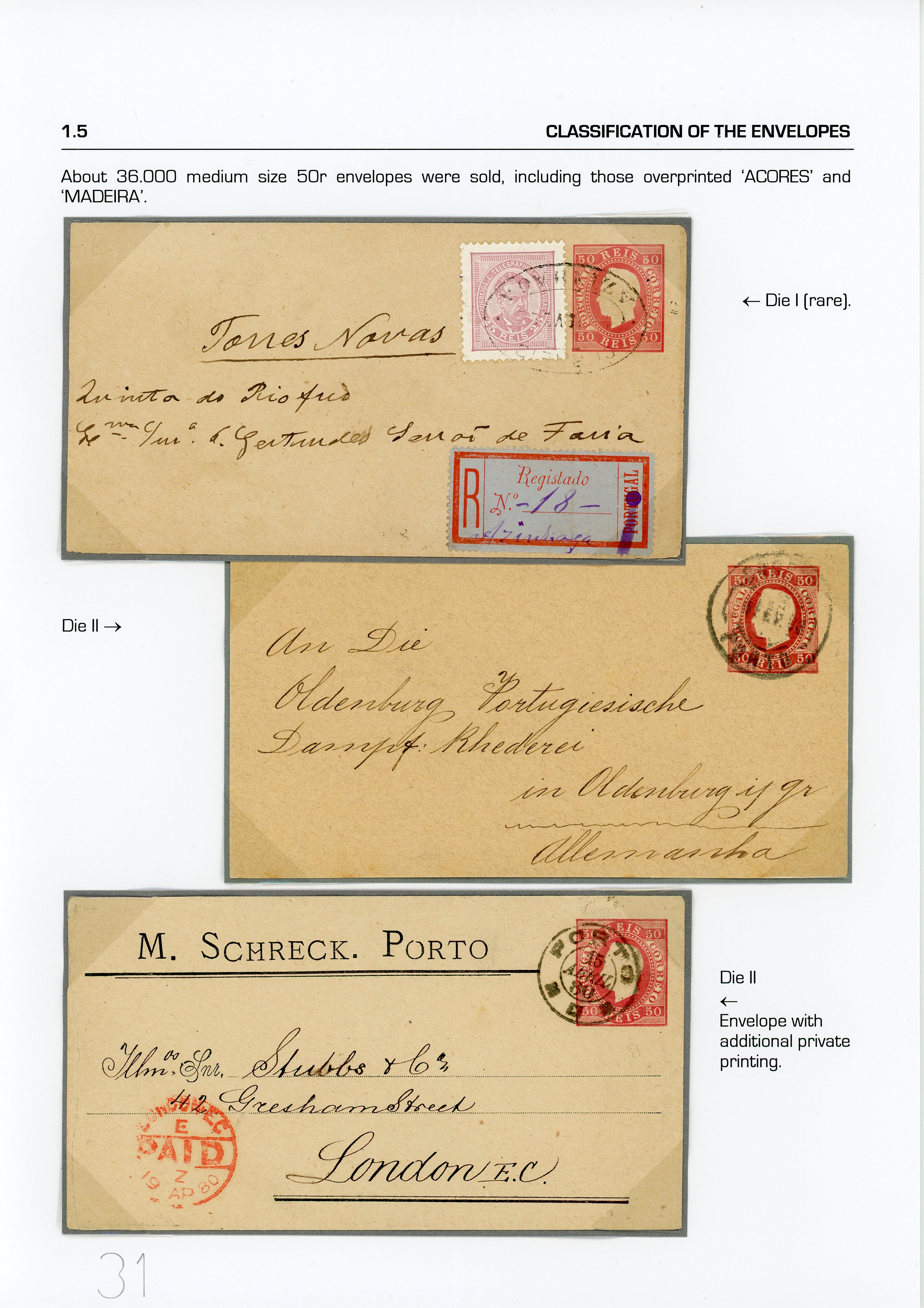 Portugal. Envelopes. D. Luis. Right-hand ribbon. Embossed printing. Lutz Hohensang Collection. 7