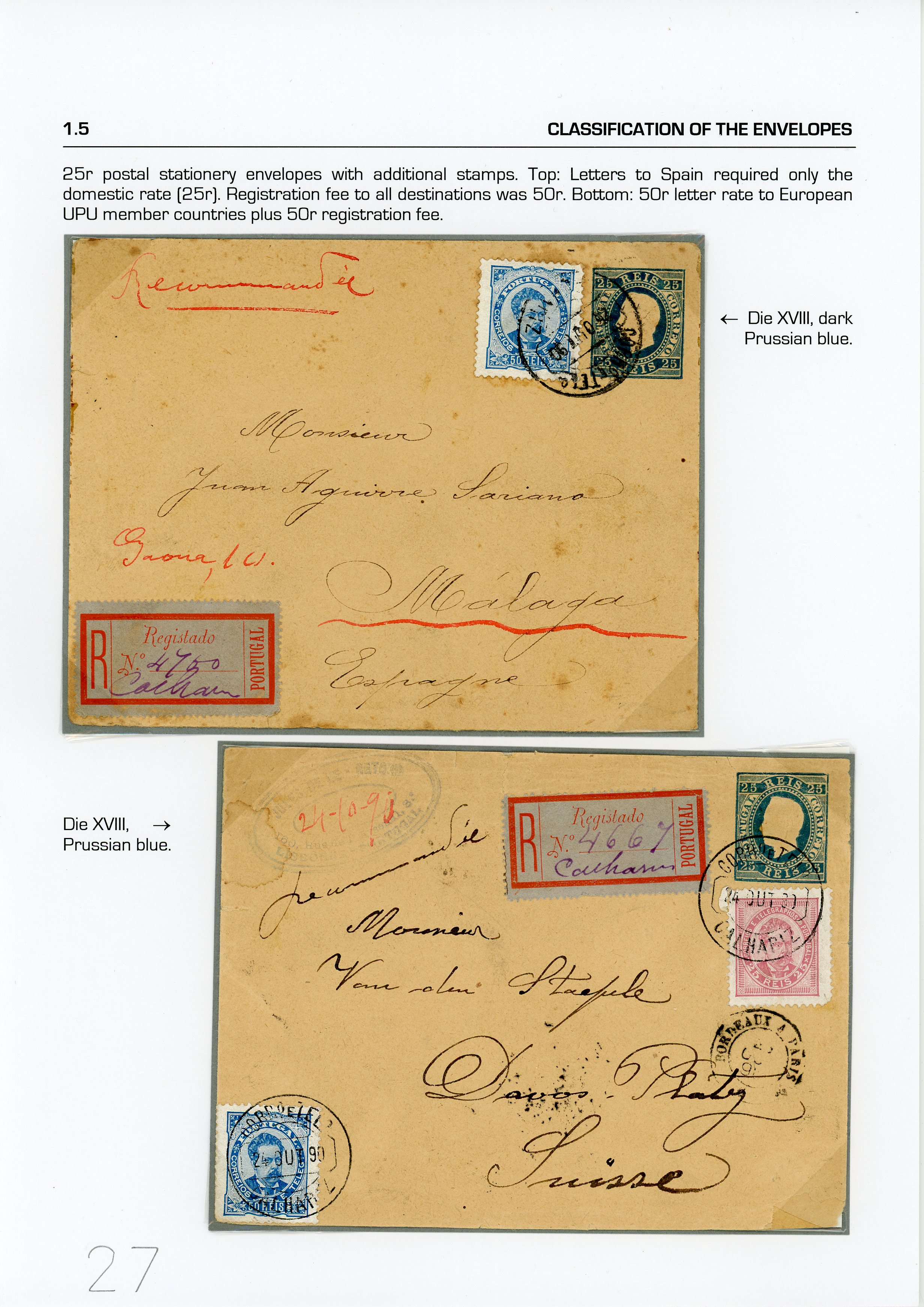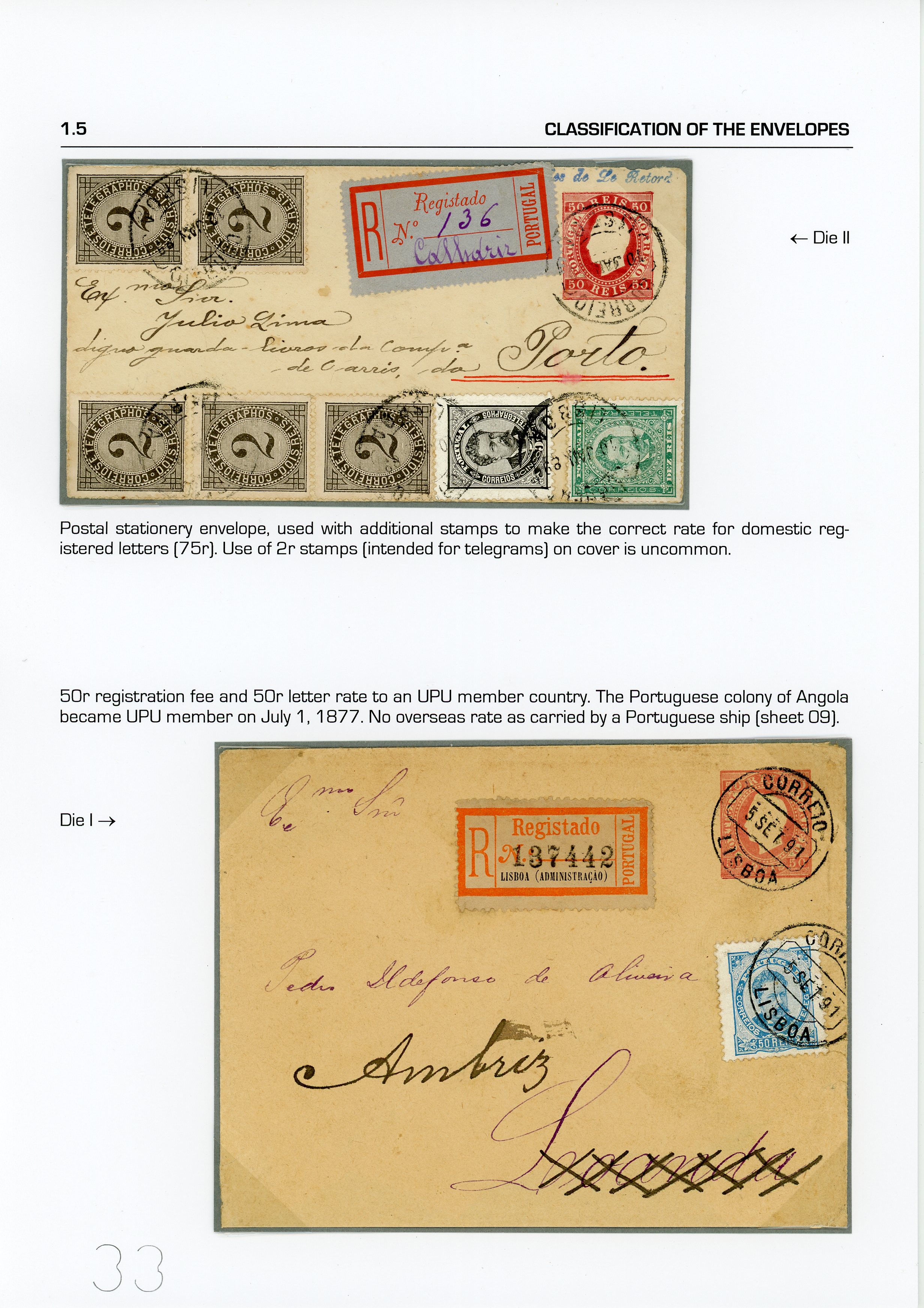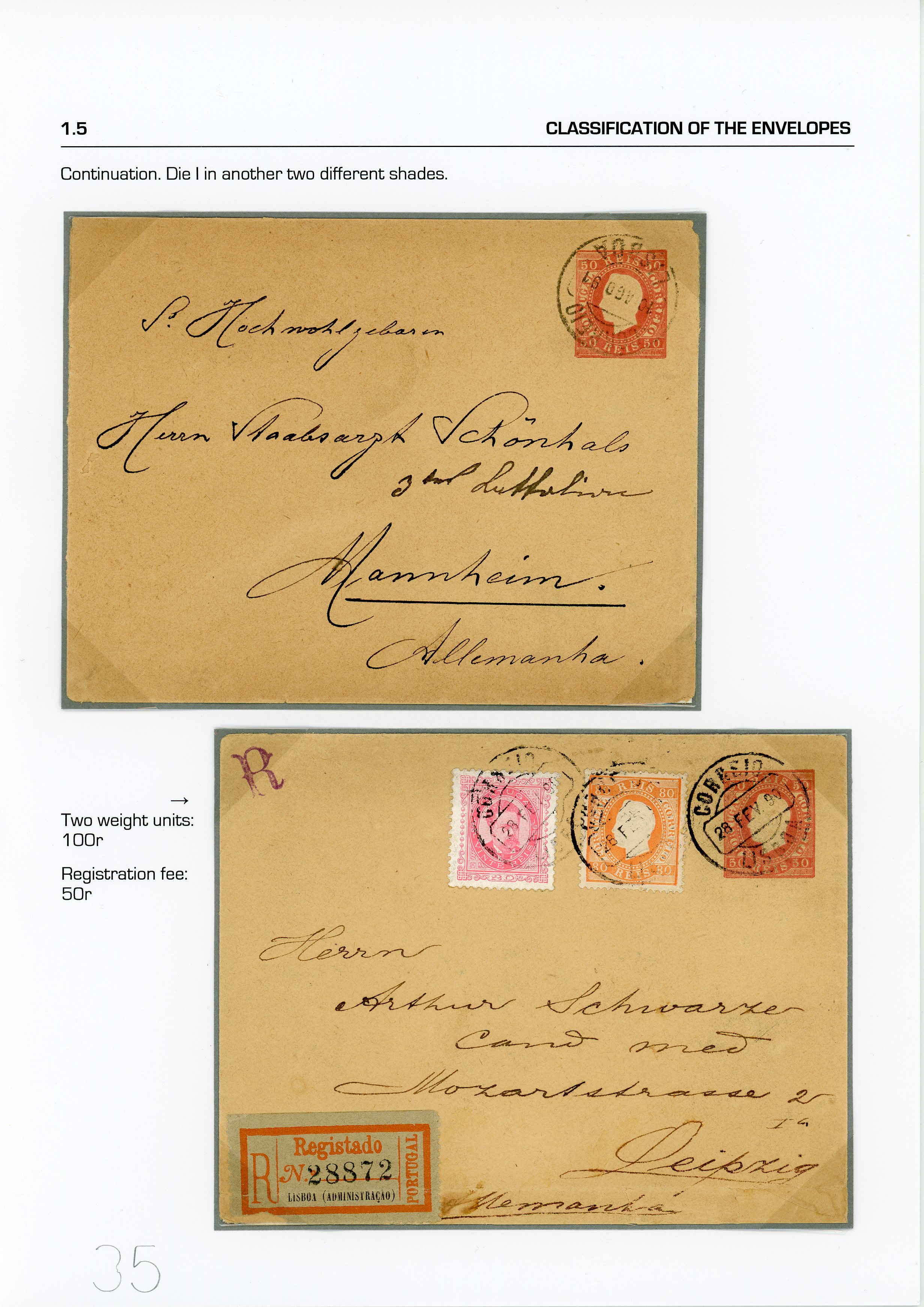 medium-sized envelopes, one registered with an additional stamp of 80 reis MB(Image 1)