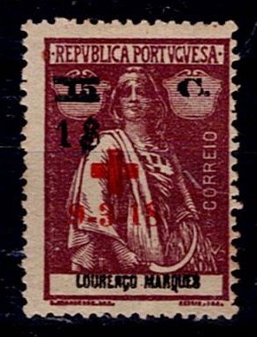 796 imageLourenço Marques 1918 Ceres with "Red Cross" overprint. Stamp Mf#170 1$ s/ 15 c. on lightly dotted paper, considered a forgery. New stamp, with gum and hinge. Lot to be seen.(Image 1)