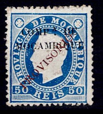 804 imageMozambique Company 1895 D. Luis I, straight ribbon, with PROVISIONAL overprint. Stamp Mf#26, dark blue, 12 3/4 perforated porcelain paper, overprint A. New stamp, with gum and hinge, with good relief and good color.(Image 1)