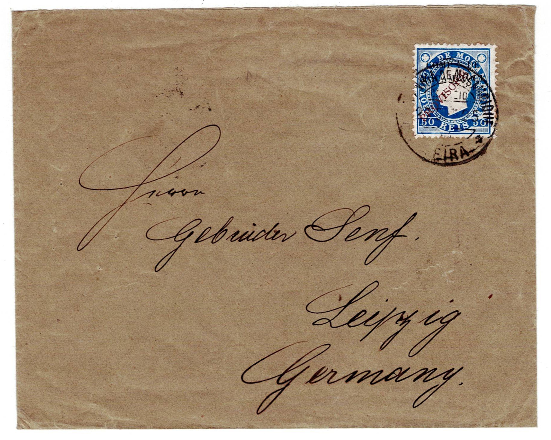 805 imageMozambique Company. Letter sent from Beira on 10/27/1895 to Leipzig, postage of 50 reis, Mozambique stamp of 50 reis D. Luis Relevo, with sc PROVISIONAL Mozambique Company. Arrival in Leipzig on 11/1895. MB and R.(Image 1) (Image 2)