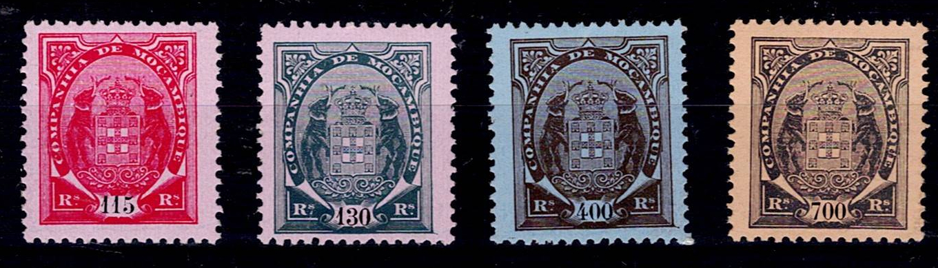 806 imageMozambique Company 1904 Elephants, new values. Complete series of Mf#45-48, colored porcelain paper, perforation 11 3/4. New stamps, gummed and hinged, without defects or repairs, with good color. Catalog value €36.(Image 1)