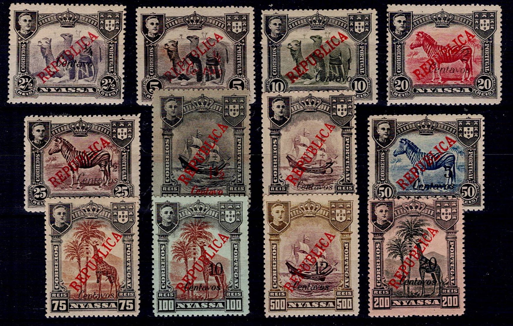 Zambézia 1914 D. Carlos I with local "REPUBLICA" overprint. Complete series of Mf#70-80, new stamps,