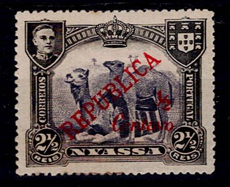 Cia do Niassa 1921 – D. Manuel II, with “REPUBLICA” overprint and lithographed surcharge in LISBON.