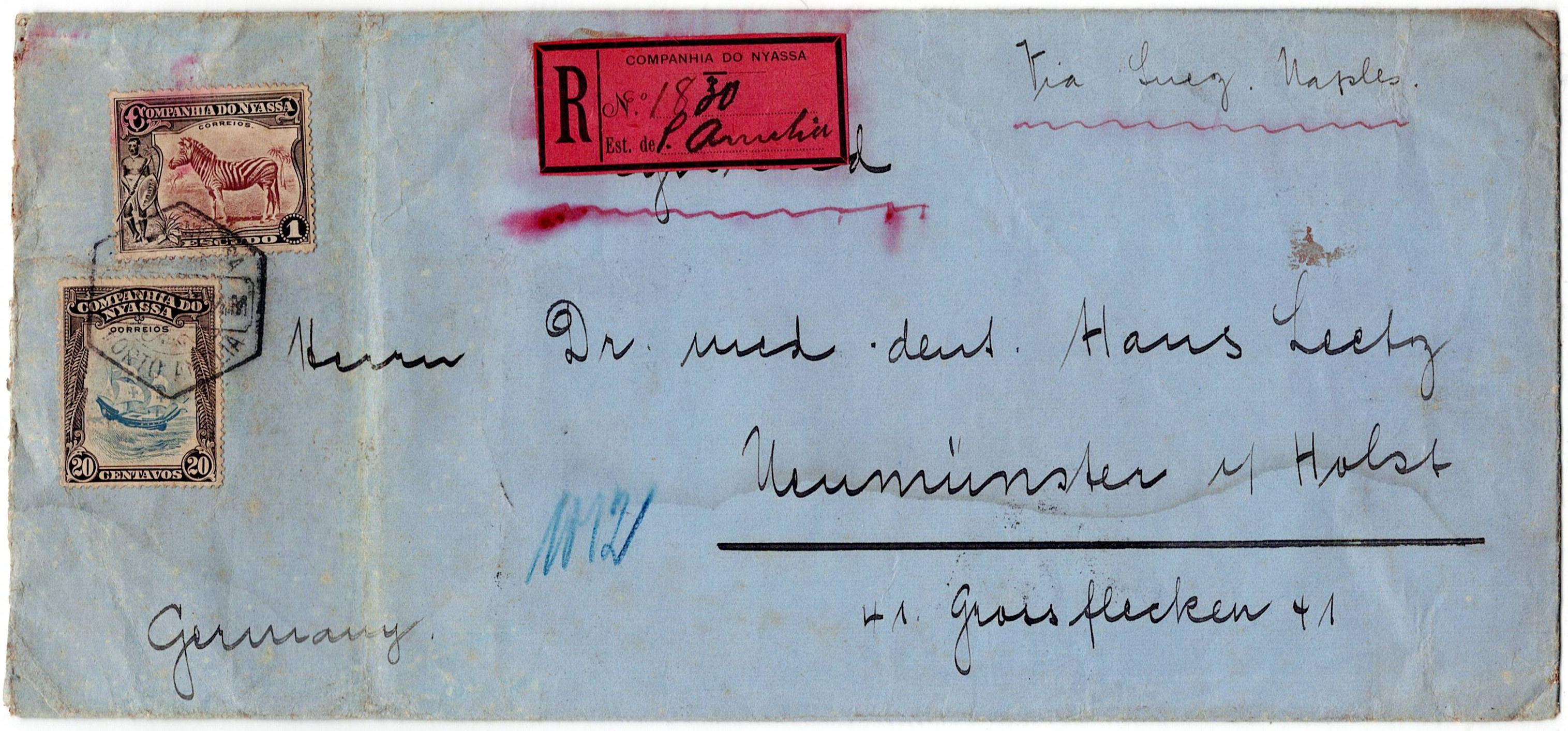 of 20 centavos), obliterated in Porto Amélia, via Suez and Naples to Germany 14.11.1923. B and R(Image 1)