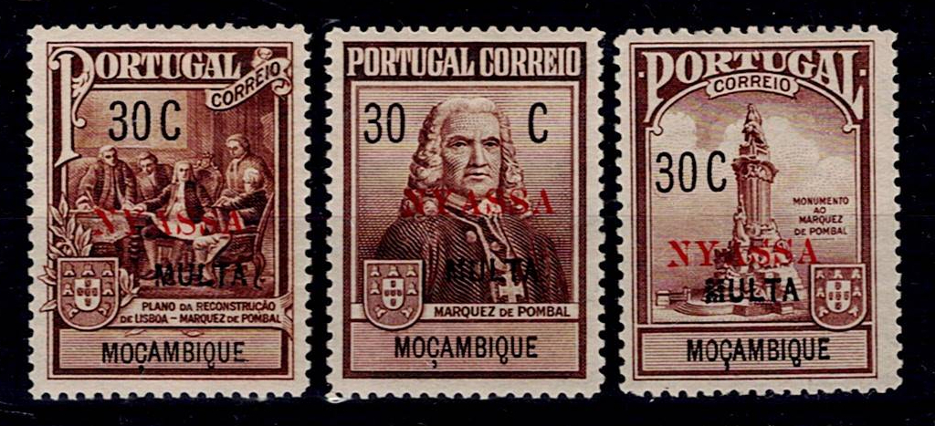 Niassa 1925 Postage Tax, Monument to the Marquis of Pombal. Complete series of Mf#1-3, new stamps, with