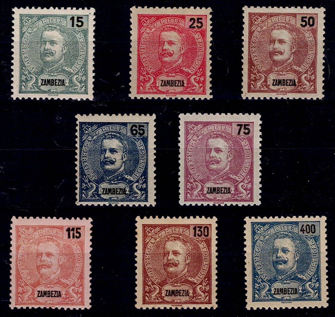 Zambézia 1903 D. Carlos I, Mouchon type, new colors and values. Complete series Mf#46-53 of new stamps,