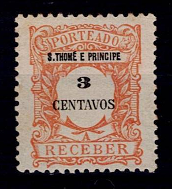 898 imageSão Tomé and Príncipe 1921 Postage stamp, in centavos. Stamp Mf#P45a of 3 c. orange, with VARIETY "thomé" with "H". New stamp, with non-original gum and some dirt on the back, without repairs, with good color. Catalog value €35.(Image 1)