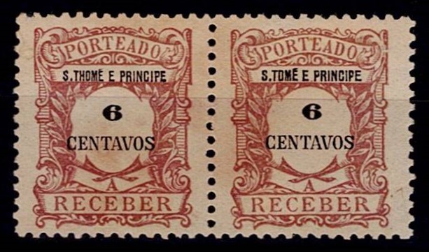 899 imageSão Tomé and Príncipe 1921 Postage stamp, in centavos. PAIR of stamps Mf#P47+47a of 6 c. light brown, the one on the left with VARIETY "thomé" with "H". New stamps, without gum and with dirt on the reverse, without repairs, with good color. Catalogue value €36.(Image 1)