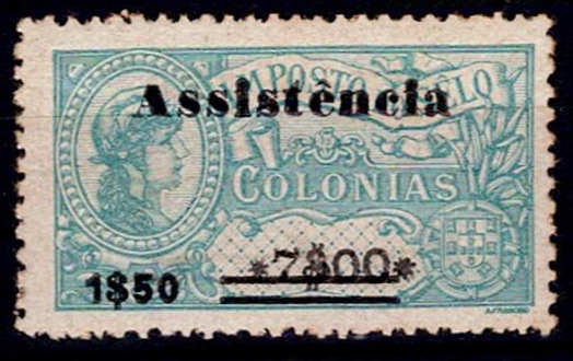 903 imageSão Tomé and Príncipe 1946 – Postal Tax. ASSISTANCE. Revenue stamps from Africa, with surcharge. Mf#IP13Ab, 2$50 without 7$00, green, vertically dotted paper, serration 12, type II overprint. New copy, ungummed as issued, with good color. Catalog value €190.(Image 1)
