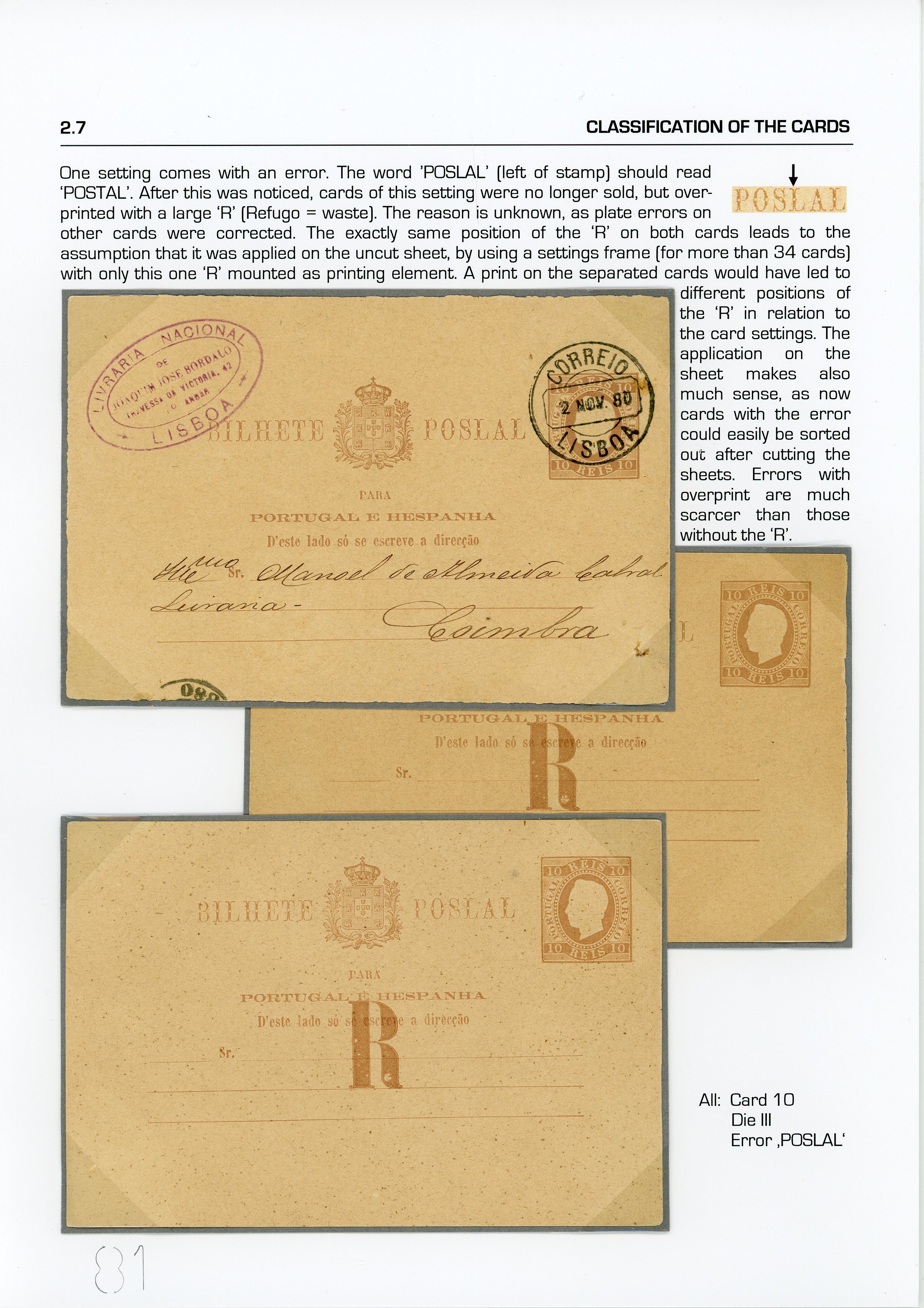 Portugal. Postcards. D. Luis Straight ribbon. Embossed print. Lutz Hohensang Collection. The 10-reis
