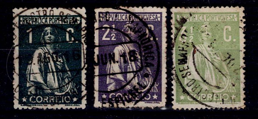 Marcophilia. Electro-semaphoric telegraphy. Lot of 3 Ceres stamps of 1, 2 1/2 and 3 1/2 centavos with