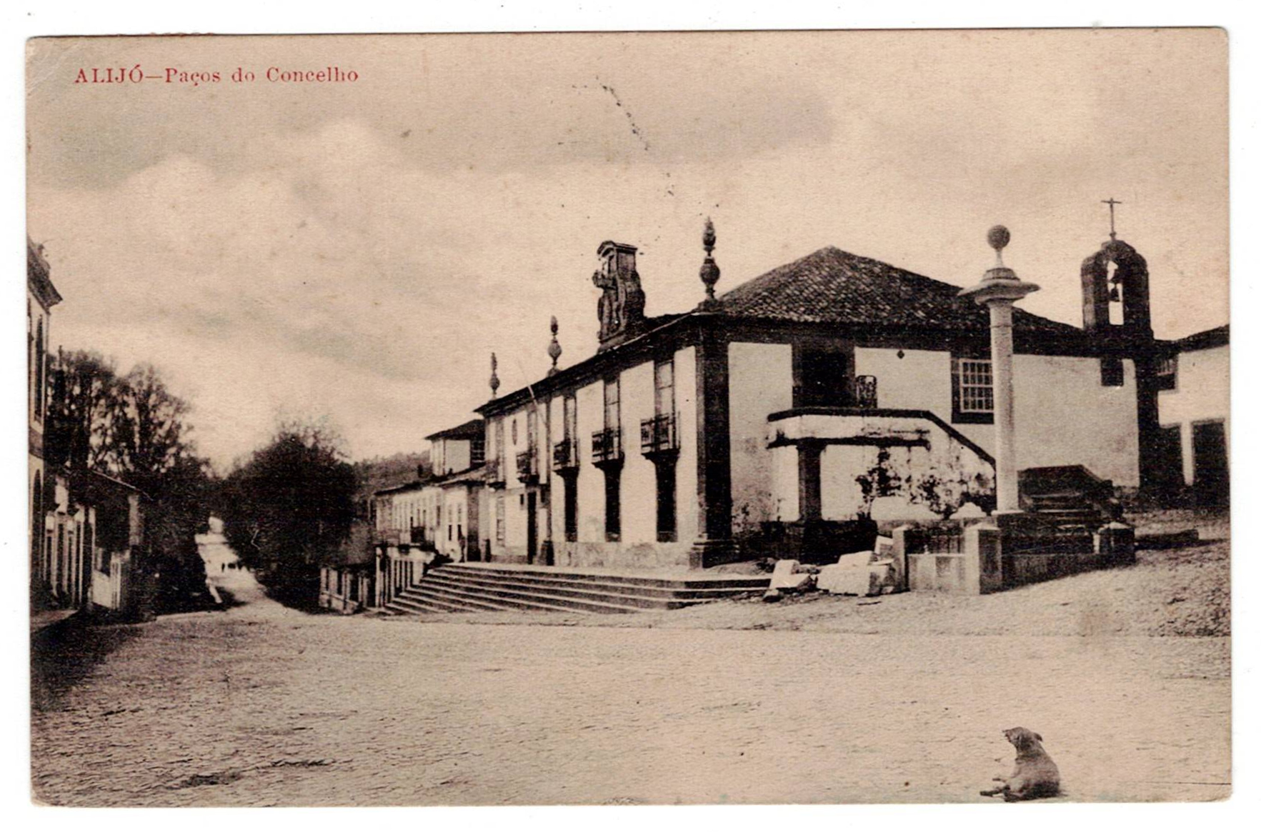 stamp, on a postcard with a view of "Alijó - Paços do Conselho", sent to Porto.(Image 1)