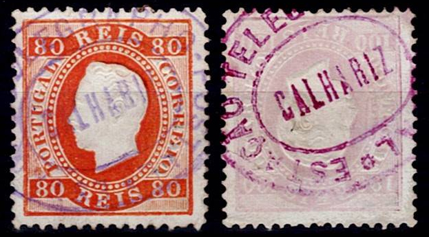 reis light lilac, with the CALHARIZ Telegraph Station postmark, in a double oval, very well beaten in violet.(Image