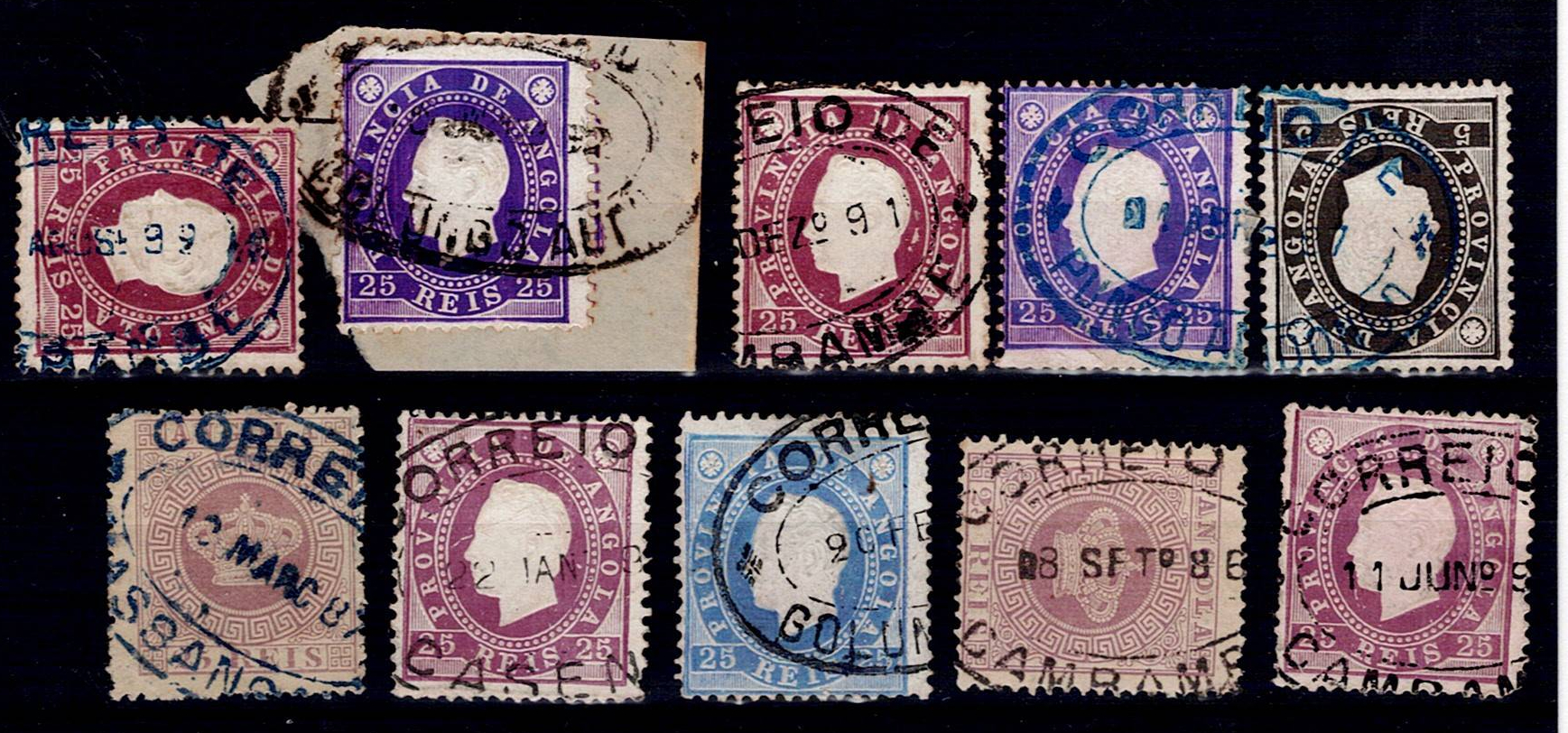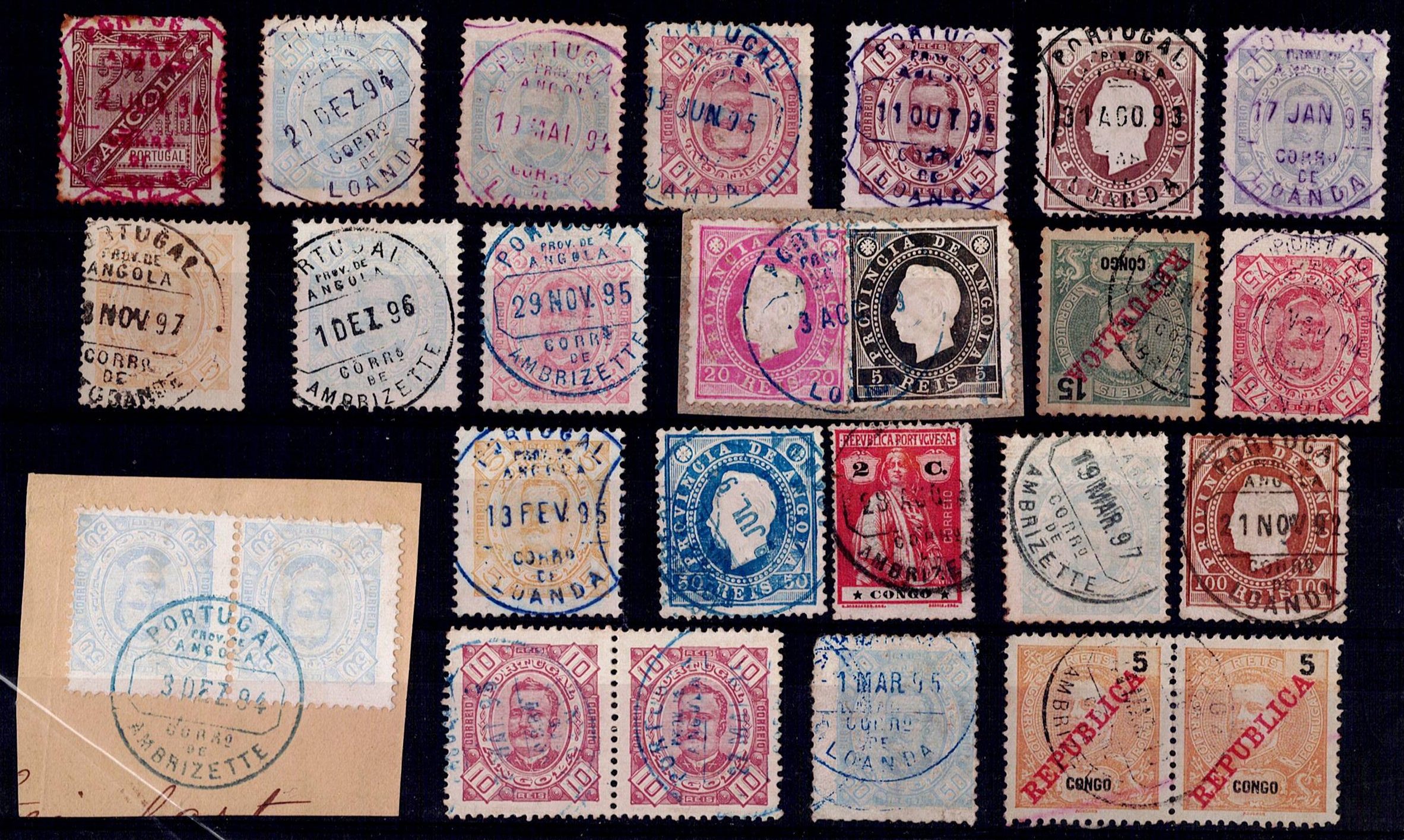 Marcofilia Angola.26 Stamps of D. Luis, D. Carlos, stamps PORTUGAL. PROVINCE OF ANGOLA/date/Locality.(Image 1)