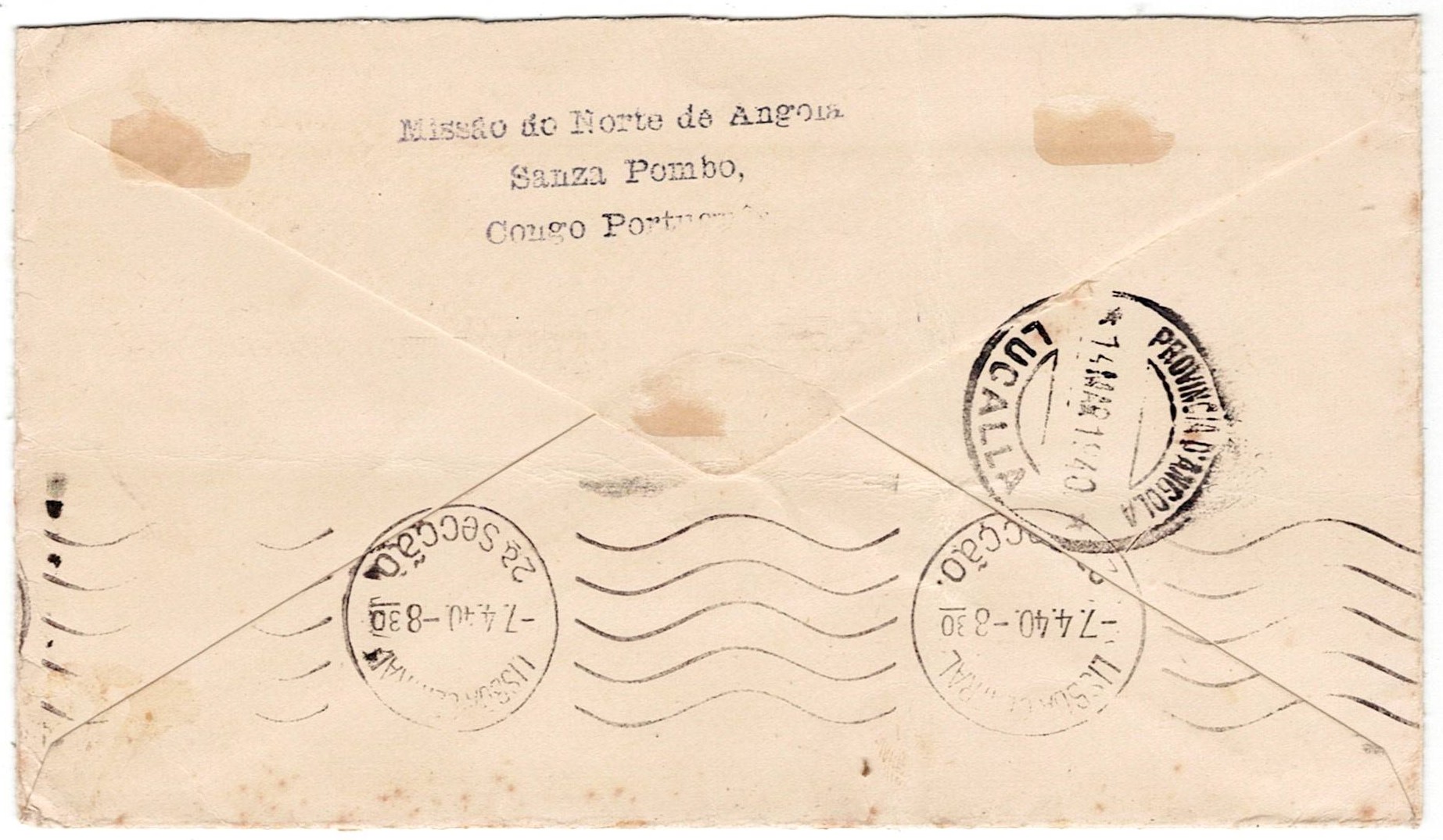 Marcofilia Angola (Congo) 1940. Envelope circulated from SANZA POMBO, via LUCALLA (14 March 1940) and