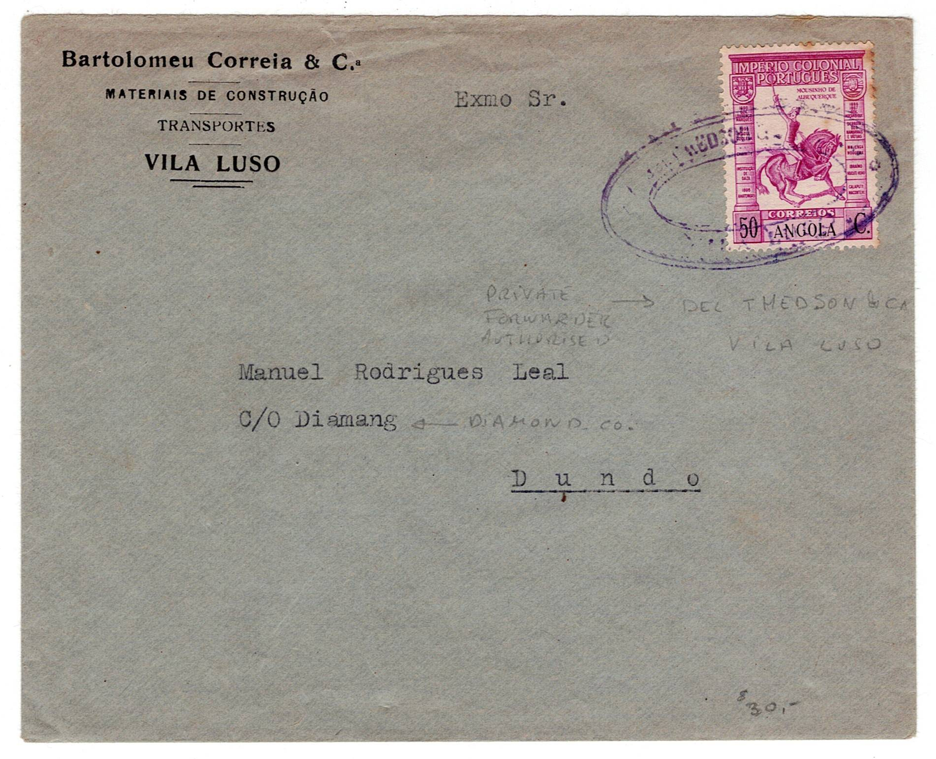 Angola letter from Vila Luzo to Dondo, franked with a 50-cent stamp from the colonial empire, with