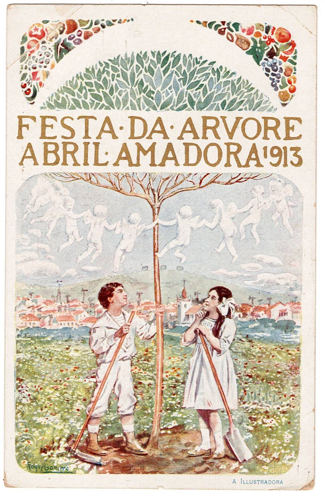 Illustrated Postcards. Polychromatic postcard AMADORA, Watercolor by Roque Gameiro, 1913, "Tree