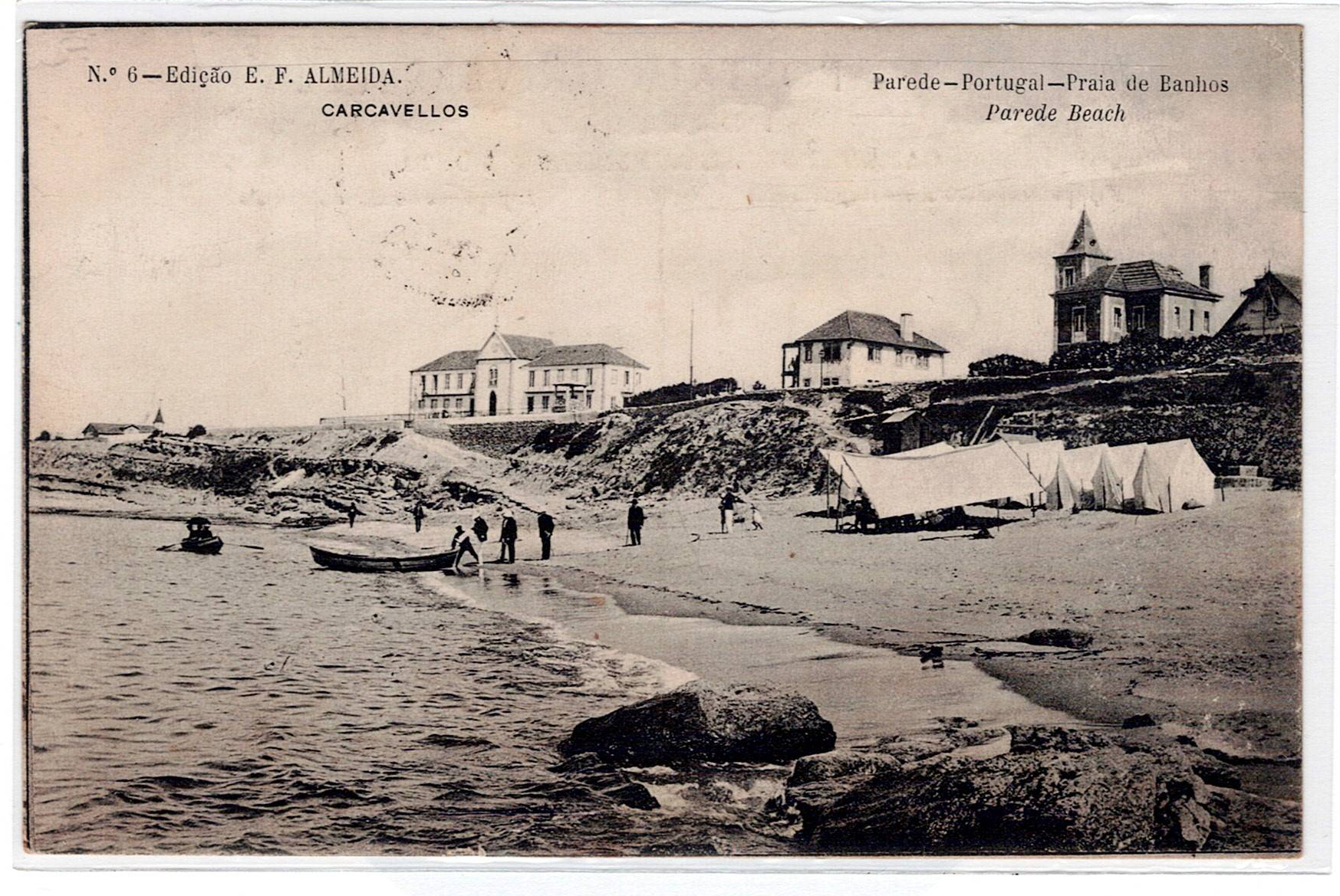 Postcards Portugal Carcavelos. Monochrome postcard locations Carcavelos - Parede - Bathing beach.