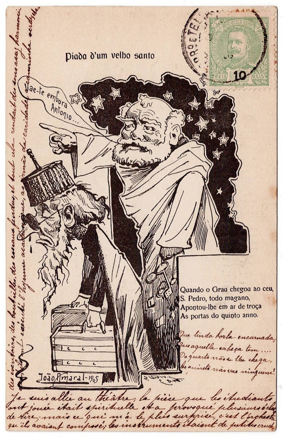 titled "Joke of an Old Saint." Circulated with a 10 reis green stamp from D. Carlos Mouchon.(Image 1)