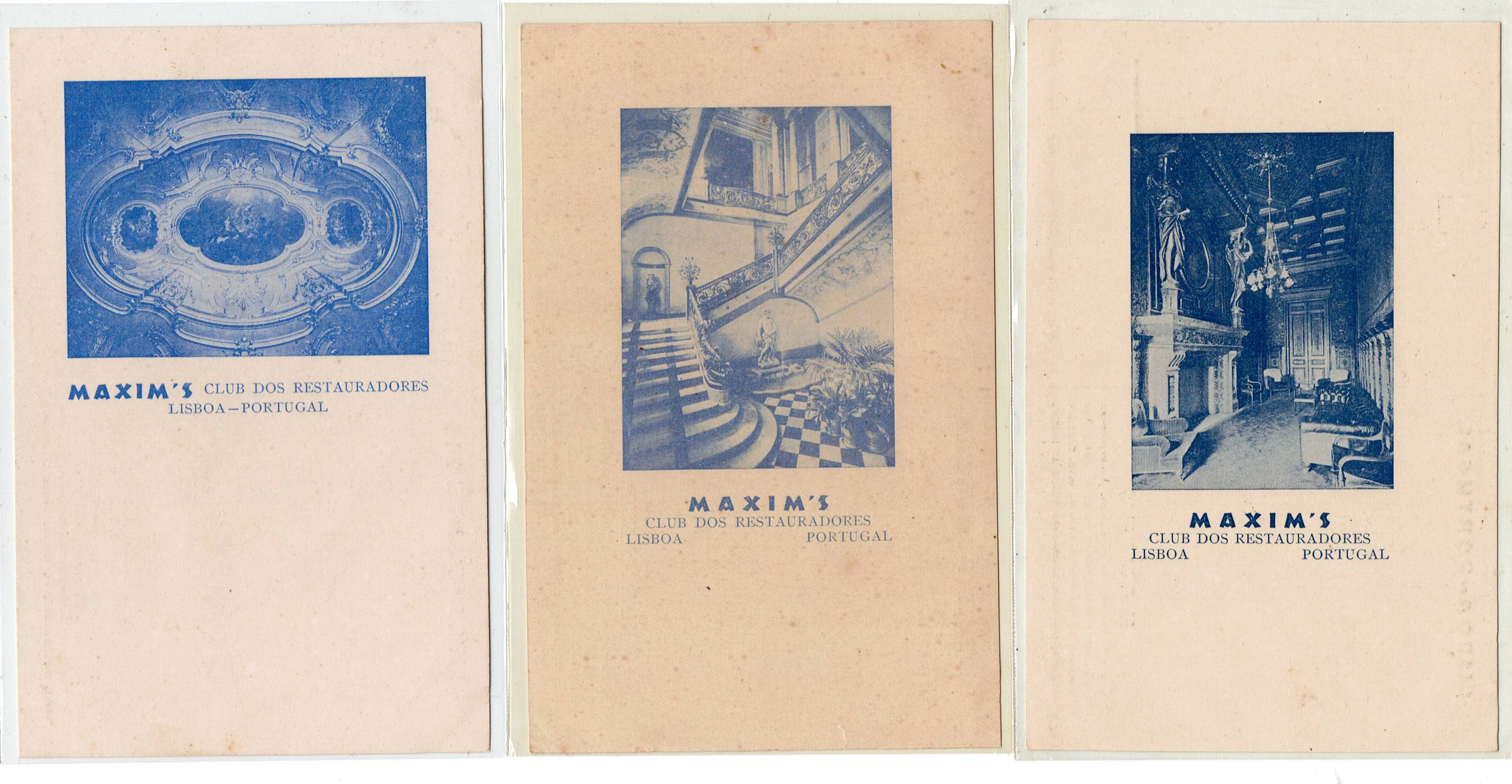 Illustrated Advertising Postcards. Set of 3 different monochrome postcards advertising "MAXIM'S -