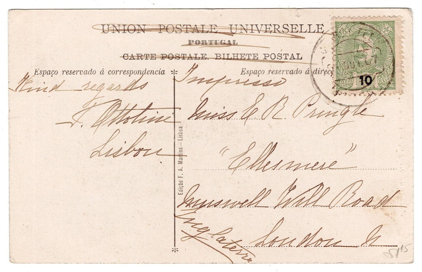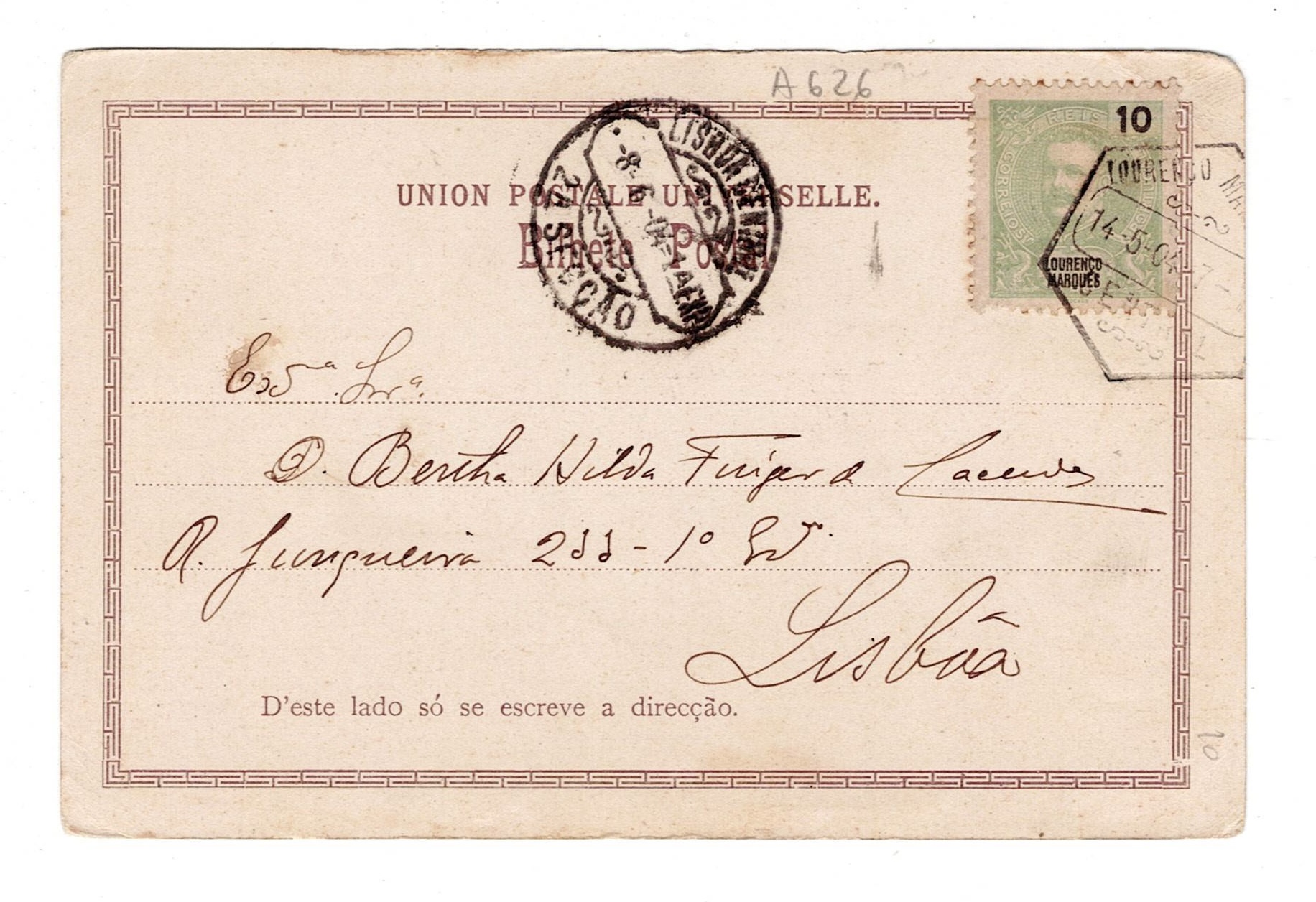 with a green 10 reis D. Carlos Mouchon stamp.(Image 1)