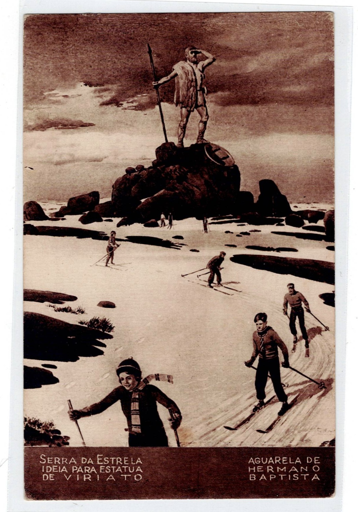 Illustrated Postcards Locations. Monochrome postcard with caption "Serra da Estrela, Idea for statue of